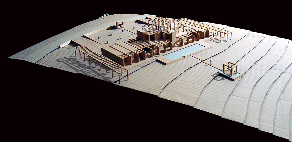 Project/ The land is situated in the hills between the plain and the Apennines and looks out onto Via Emilia in the direction of the River Po. Its composition is defined by seven parallel walls which include different sections of the landscape.