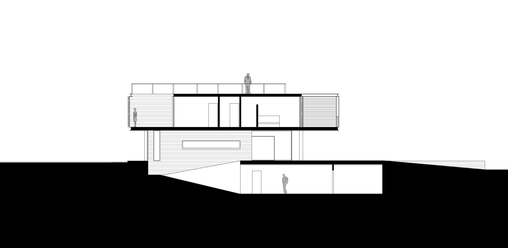 La struttura in legno è basculante e permette di modulare la luce naturale all’interno delle stanze e schermare i patii a servizio delle camere, posizionati su assi visuali privilegiati del paesaggio. La copertura, raggiungibile con una scala esterna, è pensata come grande terrazza-solarium.