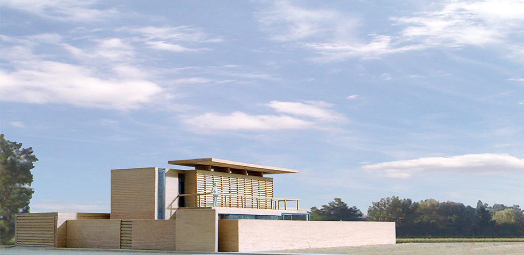Progetto/ Il lotto rettangolare a margine dell’edificato segna il limite tra l’espansione del paese verso sud e la campagna. Il progetto prevede di recintare, tramite setti murari, il terreno sui lati confinanti con l’edificato ed il parcheggio pubblico, lasciando libero il lato che prospetta sui campi.
